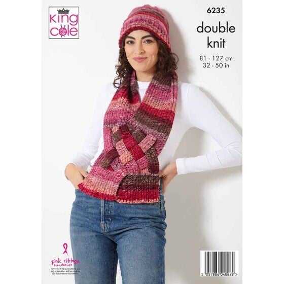 Patroon 6235, dit is een dubbel patroon: maat 32-38= 5 bollen, maat 40-46= 6 bollen, maat 48-50= 7 bollen, voor de sjaal 2 bollen en voor de muts 1 bol, dit is een breipatroon.